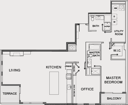 This one bedroom + office apartment is a spacious 1,636 sf with balcony. Walk-in closet, large entry way, stainless appliances including washer & dryer are just some of the amenities.