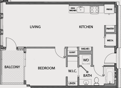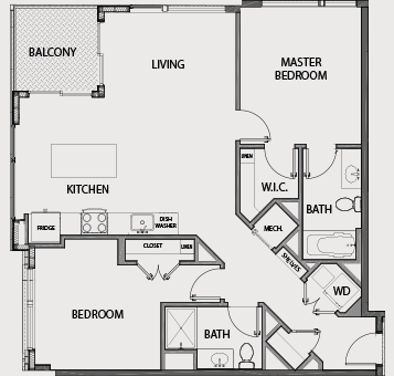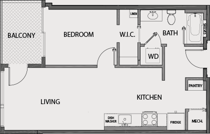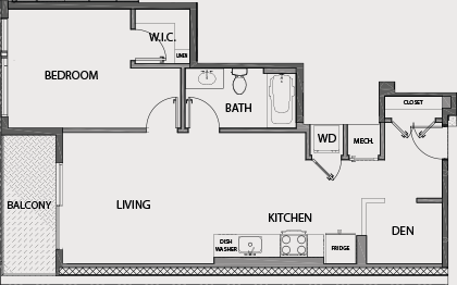 This one bedroom + den apartment is a spacious 801sf with balcony with views of the Mississippi River. Walk-in closet, large entry way, stainless appliances including washer & dryer are just some of the amenities.