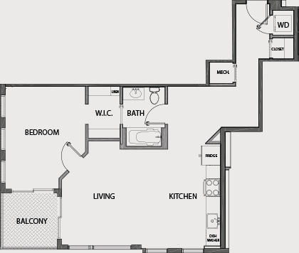 A unique corner 829 sf apartment, this unit overlooks Convention Street with a wrap-around balcony that also looks over the Mississippi River. Large walk-in closet, stainless appliances including washer & dryer are just some of the amenities.